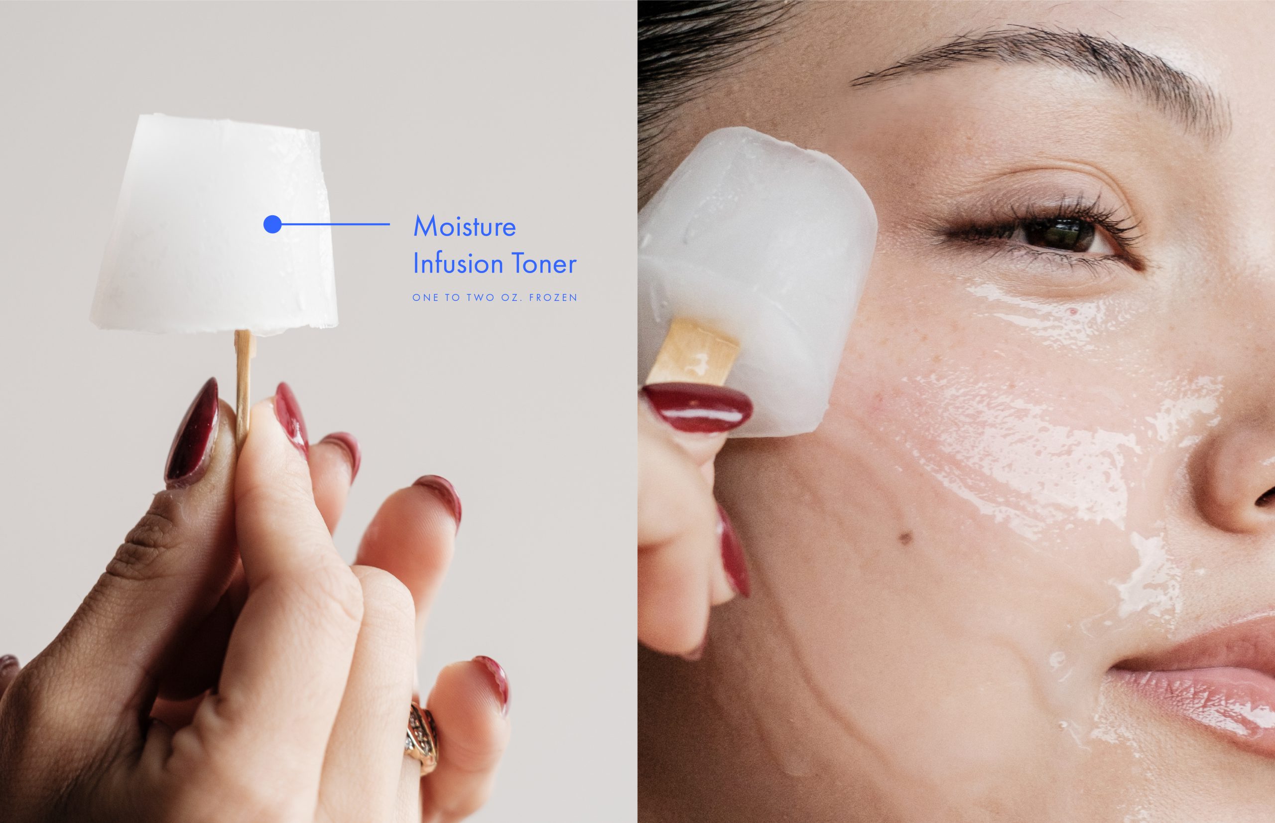 Toner ice cubes are recommended for use after applying a hydrating and nourishing serum (avoid using them with acids or retinol). When you apply the serum and then glide the toner ice cube over your face, the cold temperature causes capillaries to constrict. This creates a vacuum effect that may help pull the serum deeper into the skin’s layers, increasing its effectiveness.